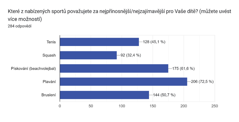 Za nejpřínosnější přitom rodiče dlouhodobě považují plavání a pískování.