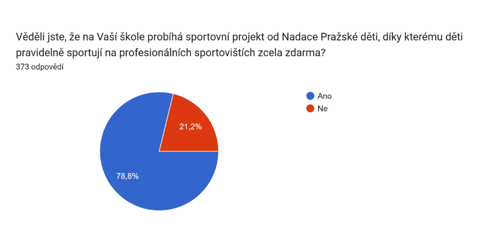 Poté, co jsme je seznámili se sportovním projektem V PRAZE 1 NAUČÍME DĚTI SPORTOVAT, 95 % z nich uvádí, že je takový projekt v historickém centru Prahy potřebný. A zároveň 97 % z nich oceňuje, že je projekt pro děti zdarma a je hrazený Nadací Pražské děti.